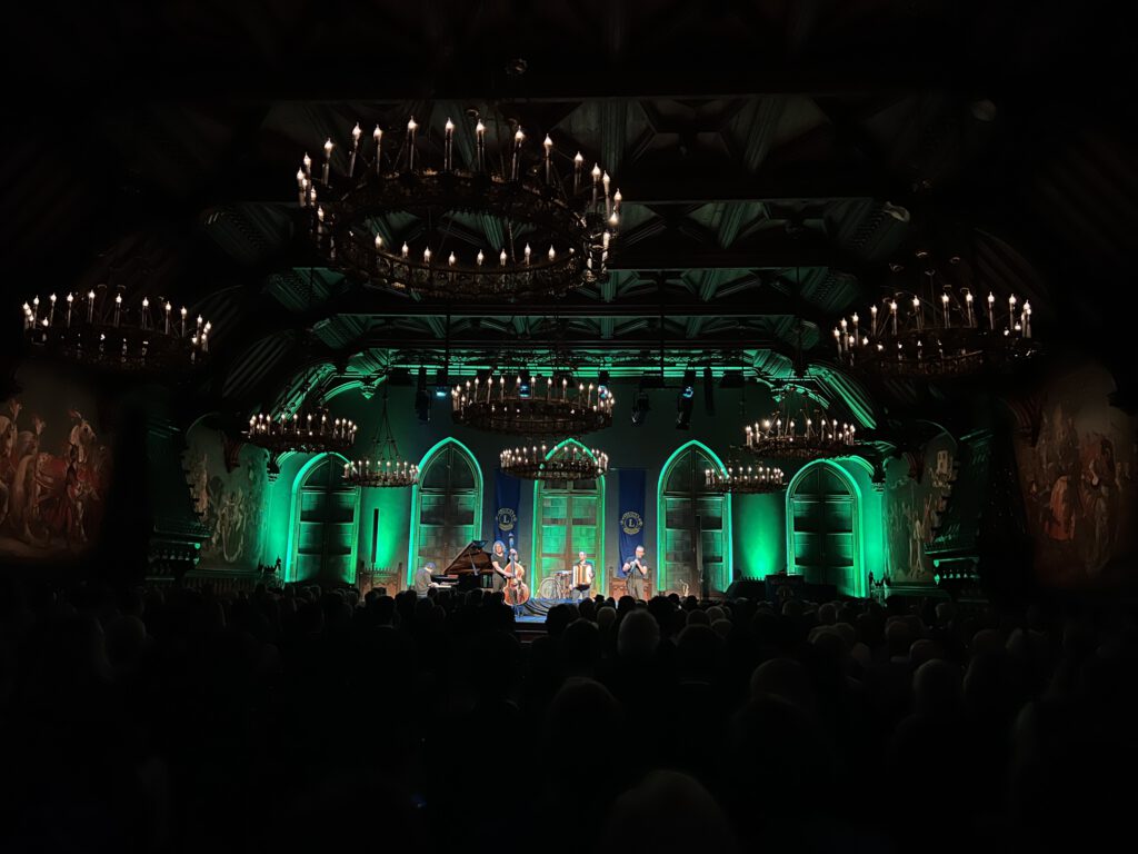Im Landshuter Rathausprunksaal veranstaltete der Lions Club 2024 ein Wohltätigkeitskonzert, zugunsten von Einrichtungen der Hospiz- und Palliativ-Versorgung in der Region. Für den Musikalischen Inhalt des Abends sorgte die Gruppe Quadro Nuevo mit ihrem Programm Happy Deluxe.